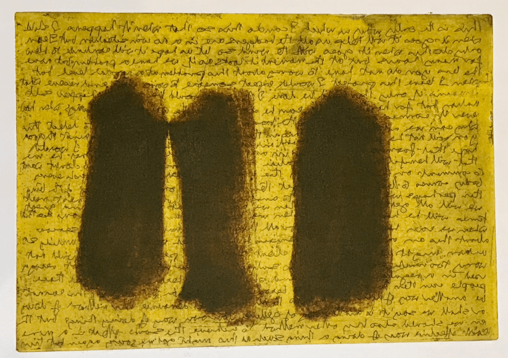 I managed to sort through my father’s remaining prints yesterday and made the decision to pass some of the working documents, exercises and trial prints to a school for cut up and re-use. My father Francis George Smith, 1933-2020 (Painter and Printmaker) might have approved. Although there is a nagging presence just to the back right hand side of my head projected out into the room like a camera from many angles as the ghosts do like it of him saying “burn them” as he had done with previous work. I like to think of them as re-themed, like this web log today.